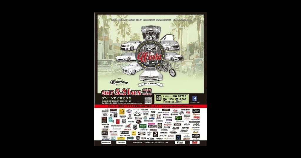名称: Westa HIROSHIMA / THE Waterfront REUNION日時: 2017年5月21日 (SUN)場所: 広島県呉市 グリーンピアせとうち詳細: Westa HIROSHIMA 事務局 協賛させて頂きますブ... -
